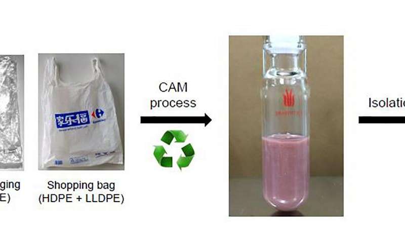 他说,新技术可以降解所有类型的聚乙烯,包括高密度聚乙烯、低密度聚乙烯、以及线性低密度聚乙烯等,并且催化剂可兼容商业级别聚乙烯中的各种添加剂。在实际生活中,这一技术可用于降解各种聚乙烯废塑料,包括废塑料瓶、废塑料膜、以及废塑料袋等。