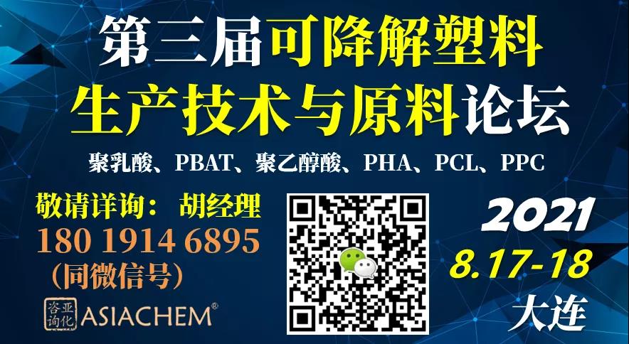 第三届可降解塑料生产技术与原料论坛2021将于8月17-18日在大连召开。会议将探讨可降解塑料政策趋势与市场前景,主流可降解塑料——聚乳酸、PBAT/ PBS、PPC、PHA、聚乙醇酸、聚己内酯生产技术与关键设备,可降解塑料原料:乳酸、丙交酯、BDO、PTA、己二酸、丁二酸、环氧丙烷,可降解塑料物理回收和化学回收技术等。会议将安排参观长兴岛(西中岛)石化产业基地恒力石化产业园、西中岛石化产业园区。